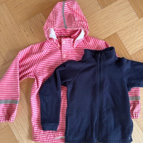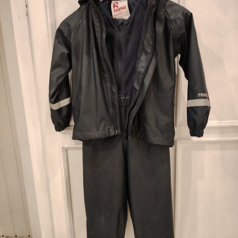 Reiman Fleece vuorellinen kura takki- ja housut. Takin kaulusta pieni ihminen nakertanut (kuva 2), muutoin erittäin siisti, ei reikiä.
