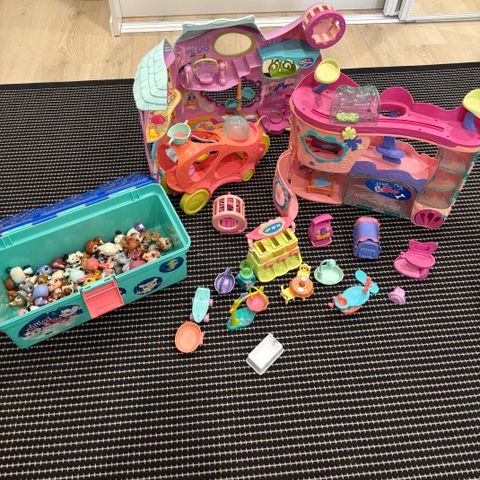 Myydään LPS talo ja korillinen figuureja, erilaisia eläinhahmoja.