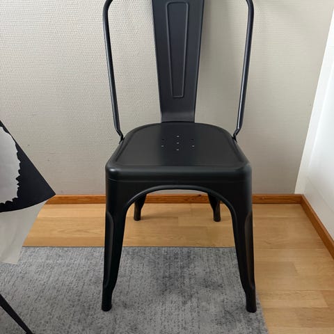 2kpl Tuoleja harmaalla verhoilulla ja mustalla metallirungolla