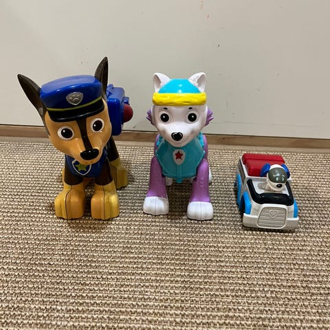 Ryhmä Hau Samppa interaktiivinen koira. Ikää jo on ja myös käytön jälkiä näkyy, mutta on edelleen toimiva. Ainostaan vesitykin ammuksista toinen ei pysy hyvin paikoillaan.
