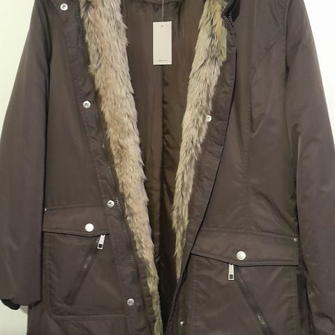 Käyttämättömäksi jäänyt naisten pitkähkö talvitakki. Koko 42. Kaksirivinen nepparikiinnitys.