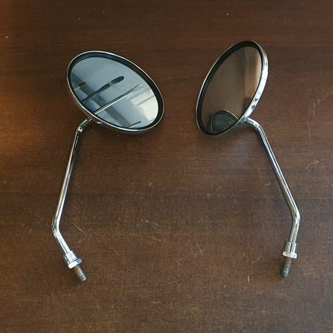 mopon peili, musta väriltään. Peilissä joustava varsi ja kiinnitysmekanismi ohjaustankoon, joka mahdollistaa säädön.