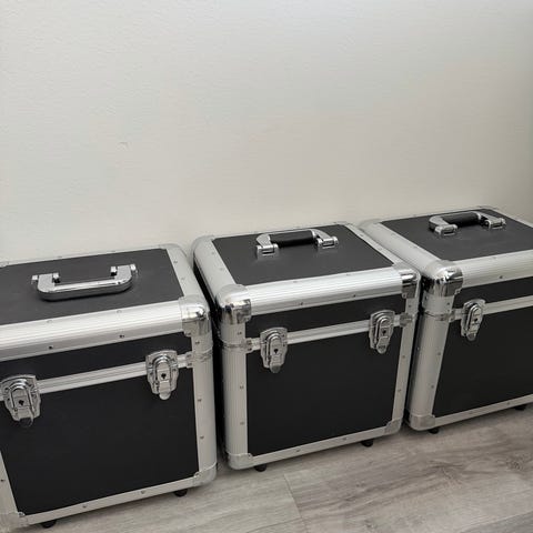 Otsikon caseja löytyisi 2 kpl käytännössä uudenveroisia, jos ei pieniä jälkiä sivuissa lasketa. Ei ole koskaan keikkailtu. Olleet varastossa. Liikutettu pari muuttoa ja pari tarraa lyöty toiseen, mutta ne saa irti.