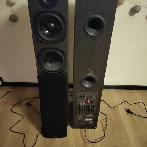 Myydään hyväkuntoiset kaiuttimet johdot vaan puuttuu.