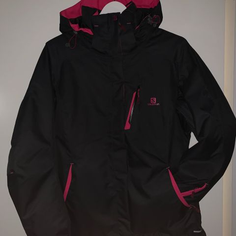 Myydään hyväkuntoinen vedenpitävä Salomon merkkinen naisten takki jossa useita toiminnallisuuksia.