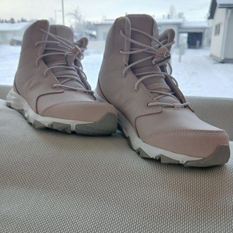 Myydään erittäin hyväkuntoiset ja juuri pestyt tyttöjen kengät / välikausikengät merkki New Balance. Kokomerkintä 36, vastannee 35 / 36. Pohjallisen kokonaismitta 23cm. Todella kevyet, helppo kiinnitys pikalukoilla, pehmeä vuori. Hyvä kunto, vuoressa hieman nukkaa. H20 resistant.