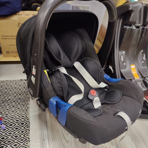Isofix-kiinnitteinen (telakka), saa kiinni myös turvavyöllä. Telakka hukassa, yritän ettiä hakijalle mukaan. Valmistusvuosi ym kuvassa.