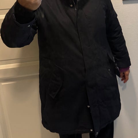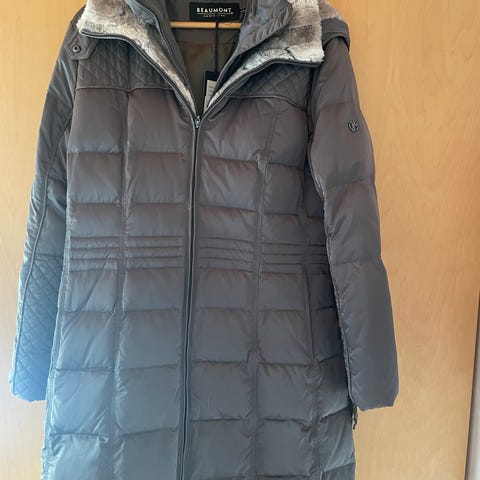Beaumont tummansininen parkatakki tikkivuorella koko 44, huppu.