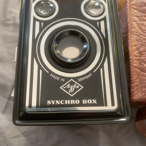 Vanha Agfa Synchro Box laatikkokamera kuvanmukaisessa, hyvässä kunnossa. Nouto tai lähetys.