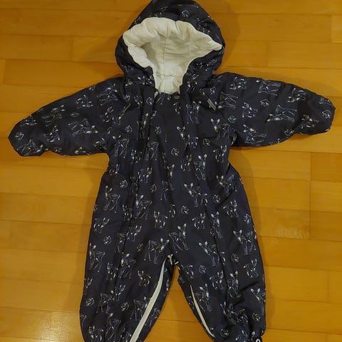 Erittäin hyvä kunto, ei mtn moitteita. Ollut käytössä yhdellä lapsella parin kk ajan. Vettä ja likaa hylkivä kangas, vuoritus pehmeää puuvillaa. Hihoissa "huput". Edessä tupla vetoketju. Haarassa kaksisuuntainen vetoketju ja nepparit, saa siis pussukka malliksi. Jalkalenksut näyttää käyttämäytömiltä.