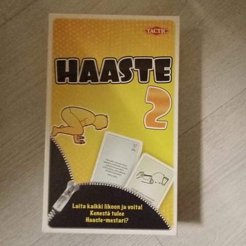 Tactic Haaste! lautapeli, sopii yli 8-vuotiaille. Peli sisältää haastekortteja, joissa on erilaisia tehtäviä, ja pelilauta. Pelissä voi testata käden taitoja ja nopeutta. Peli on tarkoitettu useammalle pelaajalle ja edistää motorisia taitoja ja hauskaa ajanvietettä.