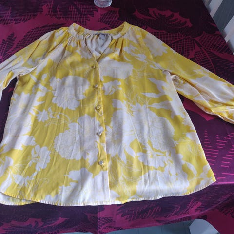 Haloselta ostettu .Muutama kerta pidetty Kirkkaan sininen pohja,kuvioilla.koko 44. Sopii lyhyt kätiselle.Muuten vastaa kokoa.hinta 10€