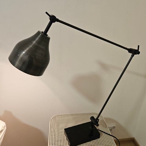 Maadoittamattomat valaisimet. Varjostimet ovat ok toiseltapuoleltaan ja tukeviudeltaan. Toisellapuolella kuluma, rikkoumaa. Ne saa maksutta kaupan päälle. Valaisimiin voi hankkia varjostimet erikseen.