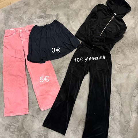 Vaatesetti koko 164cm. Caprit, housut, farkkupaita, huppari, pusero ja shortsit. Nouto tai 5e ja suuremmat ostokset voin postittaa. Halutessasi samaan toridiili- / postipakettiin voi kerätä useamman tuotteen ja maksaa ne kerralla, niin tulevat kaikki samassa paketissa. Laita viestiä torin kautta, jos haluat ostaa samaan pakettiin muuta.