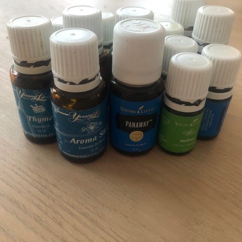 Young Living -merkkiset eteeriset öljyt, sisältäen viisi 5 ml pulloa eri tuoksuilla. Sopii aromaterapiaan ja muihin käyttötarkoituksiin, joissa eteeriset öljyt ovat tarpeen.