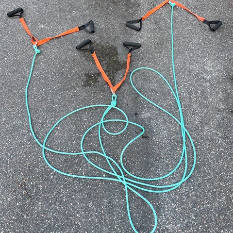 Vetolenkit: noin 150 cm, jotta voi kiskoa kaksin käsin ja hampain