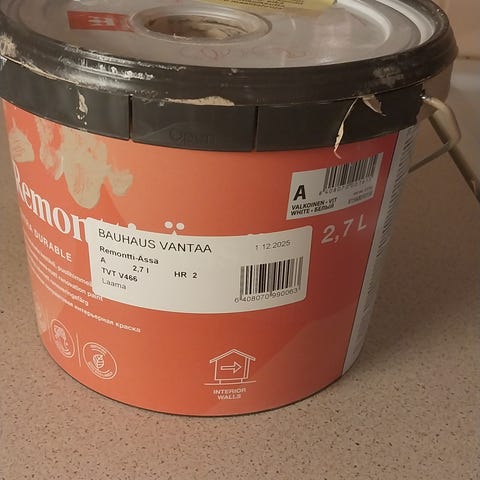 Nova 7 seinämaali, TVT G497 ( maalari valkoinen) 9l, noin puoli purkkia jäljellä