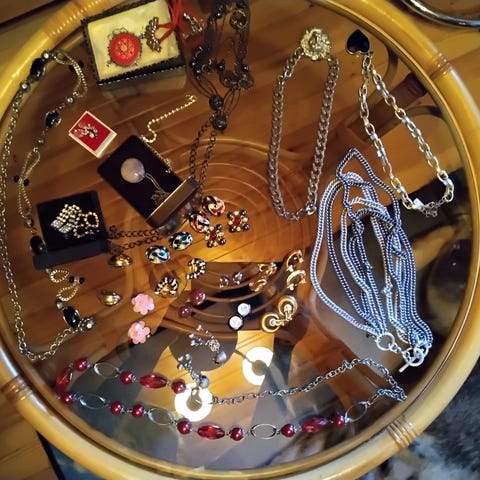 Osa vintage koruja. Kuvan lasipurkki ei kuulu mukaan.
