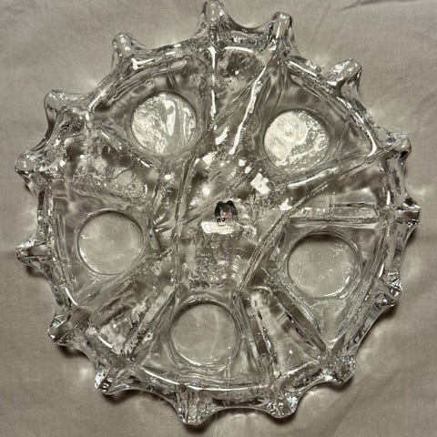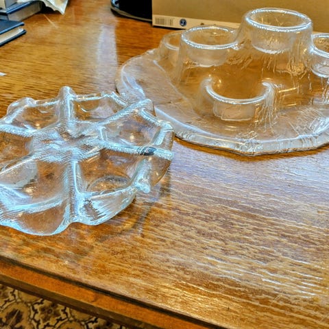Ristomatti Ratian suunnittelema lasinen tuikkuastia. Sopii hyvin mm. joulunajan tunnelmaa luomaan. Halkaisija n. 12 cm.