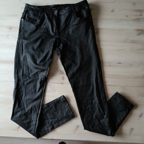 Emoi by Emonite mustat "nahka" farkut. Koko 44, mutta vastaa paremmin 42. Joustavat. Hyväkuntoiset. Vetoketju junnaa, tai sitten on käyttäjässä vika. :D