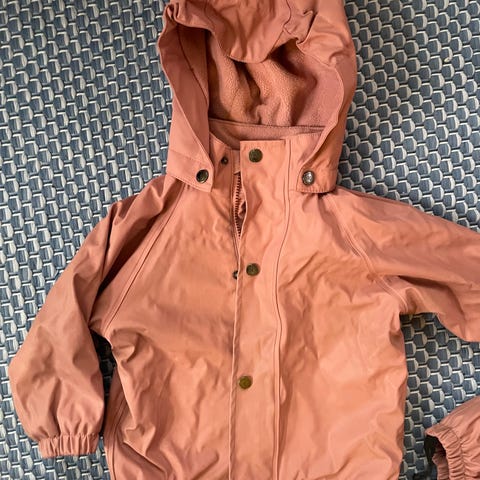 Kuling vaaleanpunainen lasten fleece-vuorellinen sadetakki ja housut, koko 86/92.