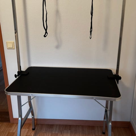 Uuden veroinen, tukeva hoito ja trimmaus pöytä ,liukumaton päällinen,saa taitettua kasaan vie pienen säilytystilan. Koko 75×50
