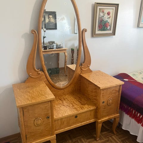 Sittemmin kaluste on toiminut kampauspöytänä, istuimena on ollut rahi.