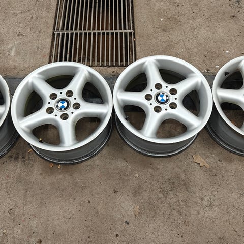 Alkuperäiset Bemarin vanteet (varaosanro 6769402). 7Jx16, ET44. Päällä vanhat ja huonot nastarenkaat. Nyt vanteiksi vaikka kesärenkaille!
