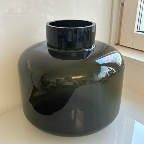 H&M Home lasimaljakko, läpinäkyvä kirkas lasi, korkeus noin 35 cm. Maljakko soveltuu kukkien tai muiden koristeiden esillepanoon.