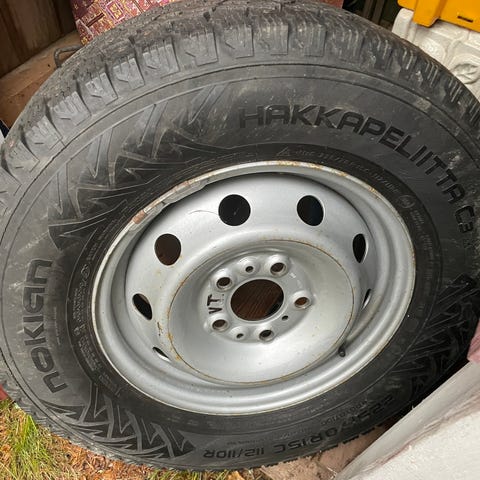 Hakkapeliitta C3:t Toyota Proace, Citroen Jumpy tai Peugeot Expert alkuperäisvanteilla. Vanteissa vähän pintaruostetta. Renkaat cargo-luokitellut. Pintaa vähintään 6mm. Yksi nasta puuttuu. Paistoleimat vuodelta 2018.