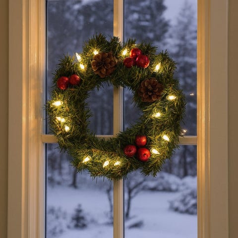 30CM Valaistu joulukranssi LED-keijuvaloilla, punakultaiset koristeet