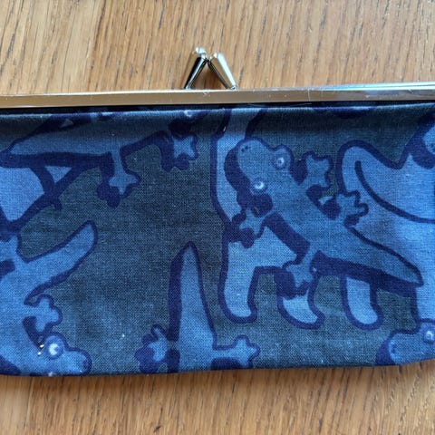 Marimekon kukkaro liskokuosilla, suunnittelija Antti Eklund. Erittäin hyväkuntoinen, Made in Finland.