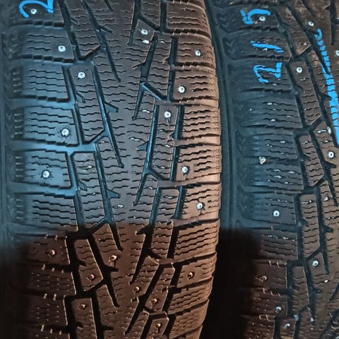 215/60/17 nastarenkaat eivät hirveästi uuttansa häpeä eli pintaa reipas 7 mm nastat 98% tallessa