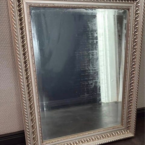 Hyväkuntoinen, pyörillä, jalustalla oleva kaksipuolinen peili. Koko 50 x 165 cm, lattiasta 173 cm. Painava.