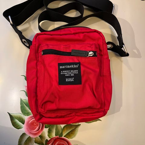 Marimekko Kangas olkalaukku mustassa värissä, suunniteltu unisex-käyttöön.