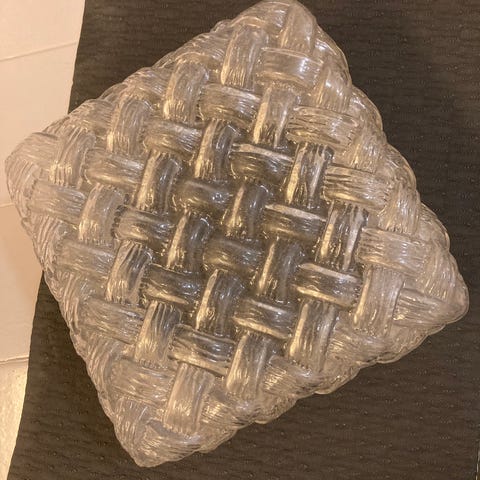 6mm karkaistua lasiax3, jokaisessa kulma, . Alapituus 49cm, korkeus 21cm ja leveys 24,5cm.