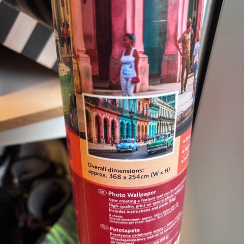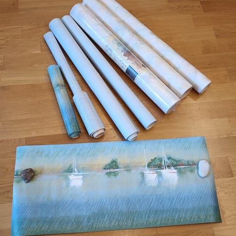 Uusi, avaamaton rulla kuitutapettia. Tapetissa useampaa väriä maltillisella voimakkuudella.