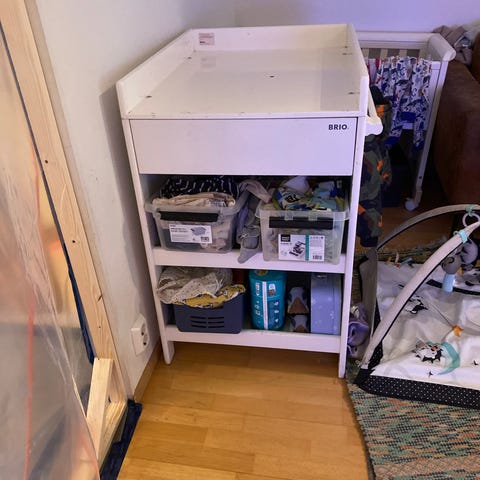 BRIO lasten hoitopöytä valkoisella puupinnalla. Hoitopöytä sisältää työtason ja kaksi hyllytasoa säilytystilaa varten. Sopii lastenhoitoon ja vaipanvaihtoon. Materiaali puu, väri valkoinen.
