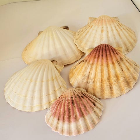 Kaksi simpukankuorya. Pituus n. 18cm. Hieman ajan kulumaa. Nämä Senegalista. Hinta 15e kpl