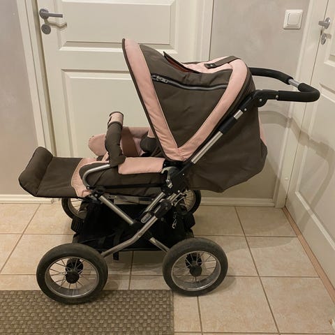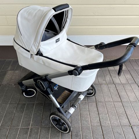 Emmaljunga NXT vaunukoppa, musta väri. Vaunu sisältää pehmeän, valkoisen sisävuorauksen ja säädettävän kuomun. Kuin uusi