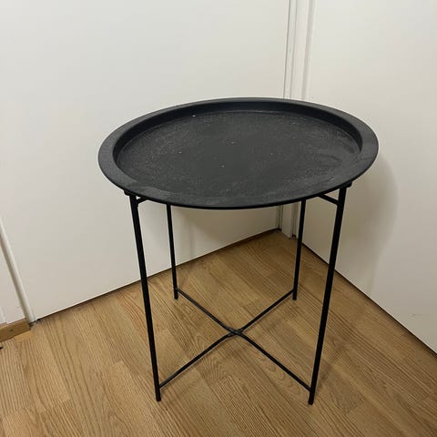 Pieni harmaa Jyskin pöytä.Näitä on 2 kpl.