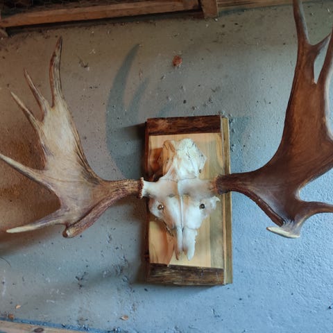 Todella komeat ja isot lapasarvet. Leveyttä hulppeat 102cm. Lakattu. Helppo kiinnittää seinään tukevasta taustalevystään.