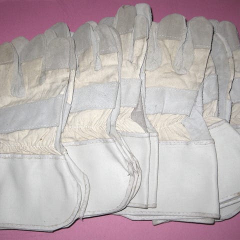 Yksi setti sisältää haljasnahkaiset työkäsineet puolivuorilla ja näppyläkäsineet. Hinta kuudelle setille