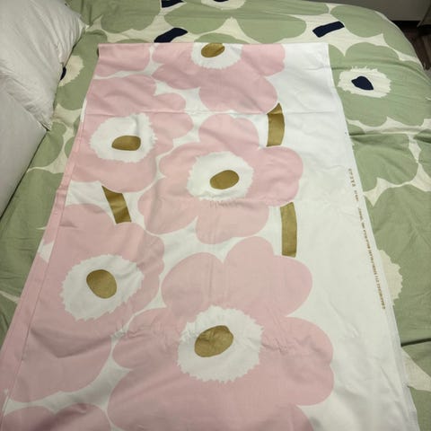 Marimekon Airinkoinen 2 kangaspalaa Koko 108x140, ja 97x140 ollut ikkunassa verhona. Pesty ja silitetty.