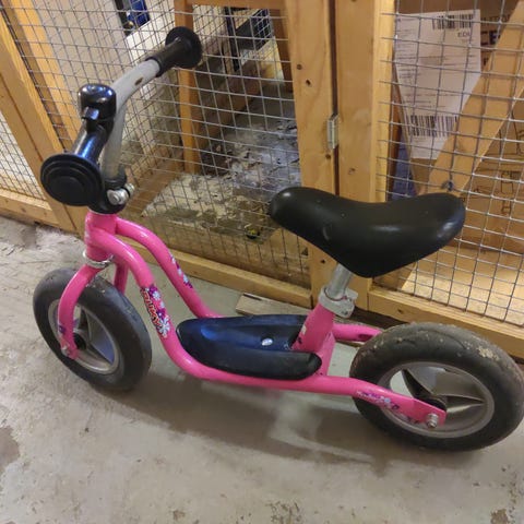 Myynnissä keltainen Stoy merkkinen lapsen potkupyörä, kuin uusi vain sisällä potkuteltu/ käytössä ollut.