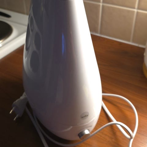 Wilfa, kuin uusi ilmankostutin, väri valkoinen, varustettu puunvärisellä pohjalla. Laite toimii sähköllä ja on suunniteltu kosteuttamaan sisäilmaa. Käytetty vain pari kertaa ja on tehokas.