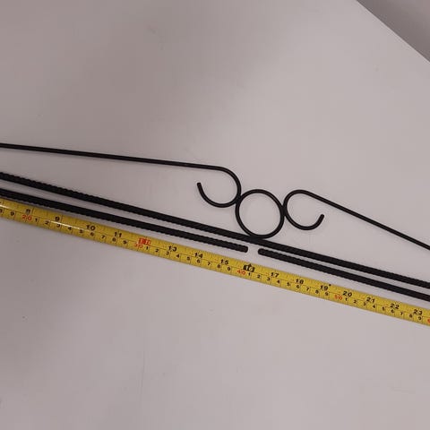 Kaksi ryijyn tai raanun pidikettä, 95cm ja 82cm. Metalli. Yhteishintaan