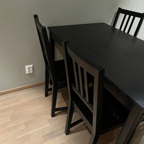 Valkoinen ruokapöytä ja 4 tuolia. Metalli jalat. Joitain käytön jälkiä, näistä kuvia. Tarjoa, jos hinta ei miellytä!