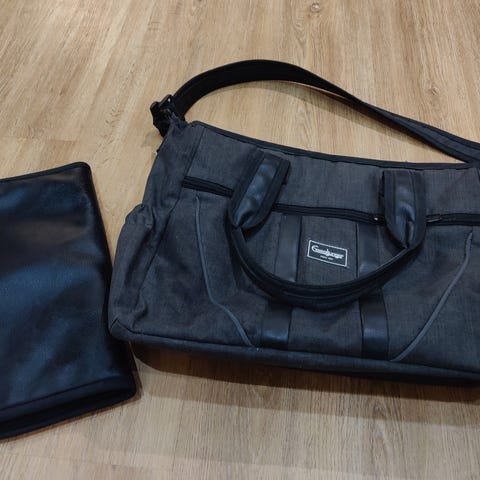 Siisti Emmaljungan tilava hoitolaukku hoitoalusta mukana. Vetoketju ei oikein toimi mikä näkyy viimeisessä kuvassa.