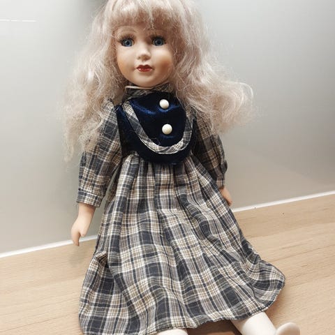 Kaunis tummakutrinen nukke. Pituus 37cm